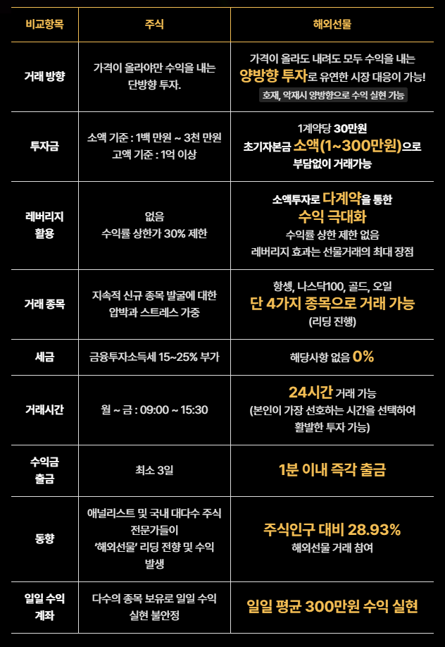 | 비교항목 | 주식 | 해외선물 |